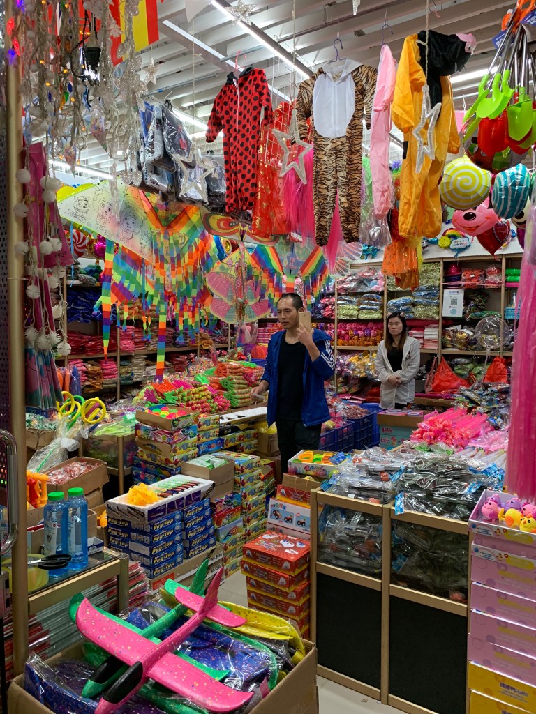 You can get just about anything here… toys, towels, umbrellas, bags, paint brushes, calendars, thermos’, kitchenware and as the name implies, stationary and office supplies. Each little cubicle is filled to the brim and bursting at the seams with stuff. They will bargain with you but I think I insulted a lady when I offered her a price for two bags. She said they were cheap already and refused to bargain. Oh well, her loss.