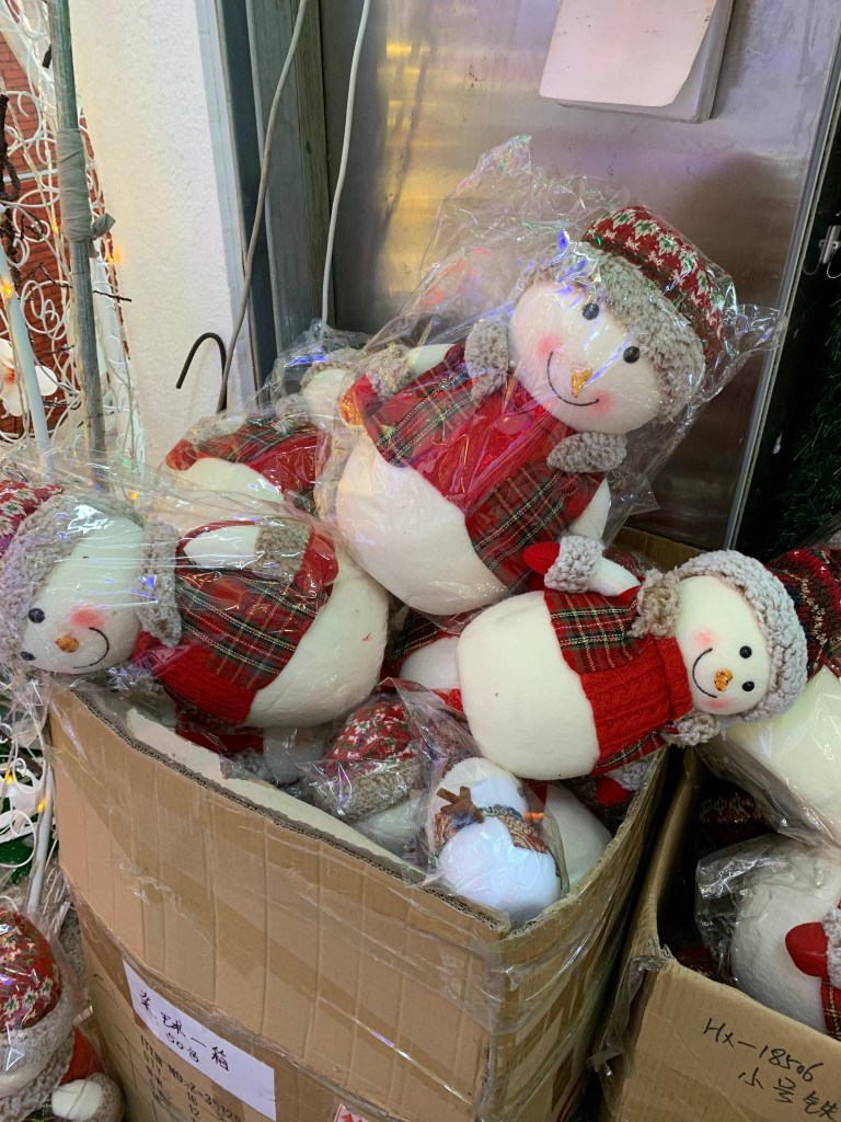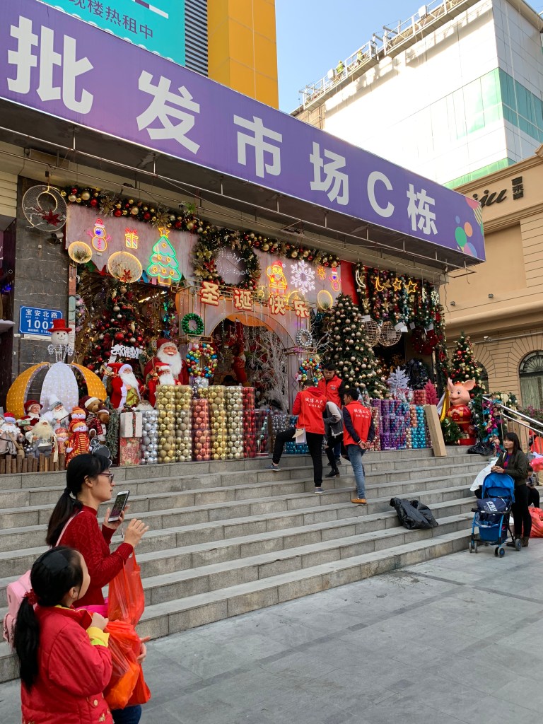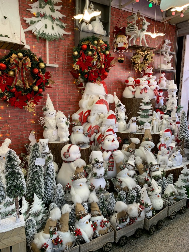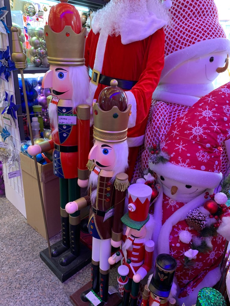 The Stationary Market consists of three building, five stories high, all filled with STUFF! As you can see, it is all decked out for Christmas. Christmas overload, that is.