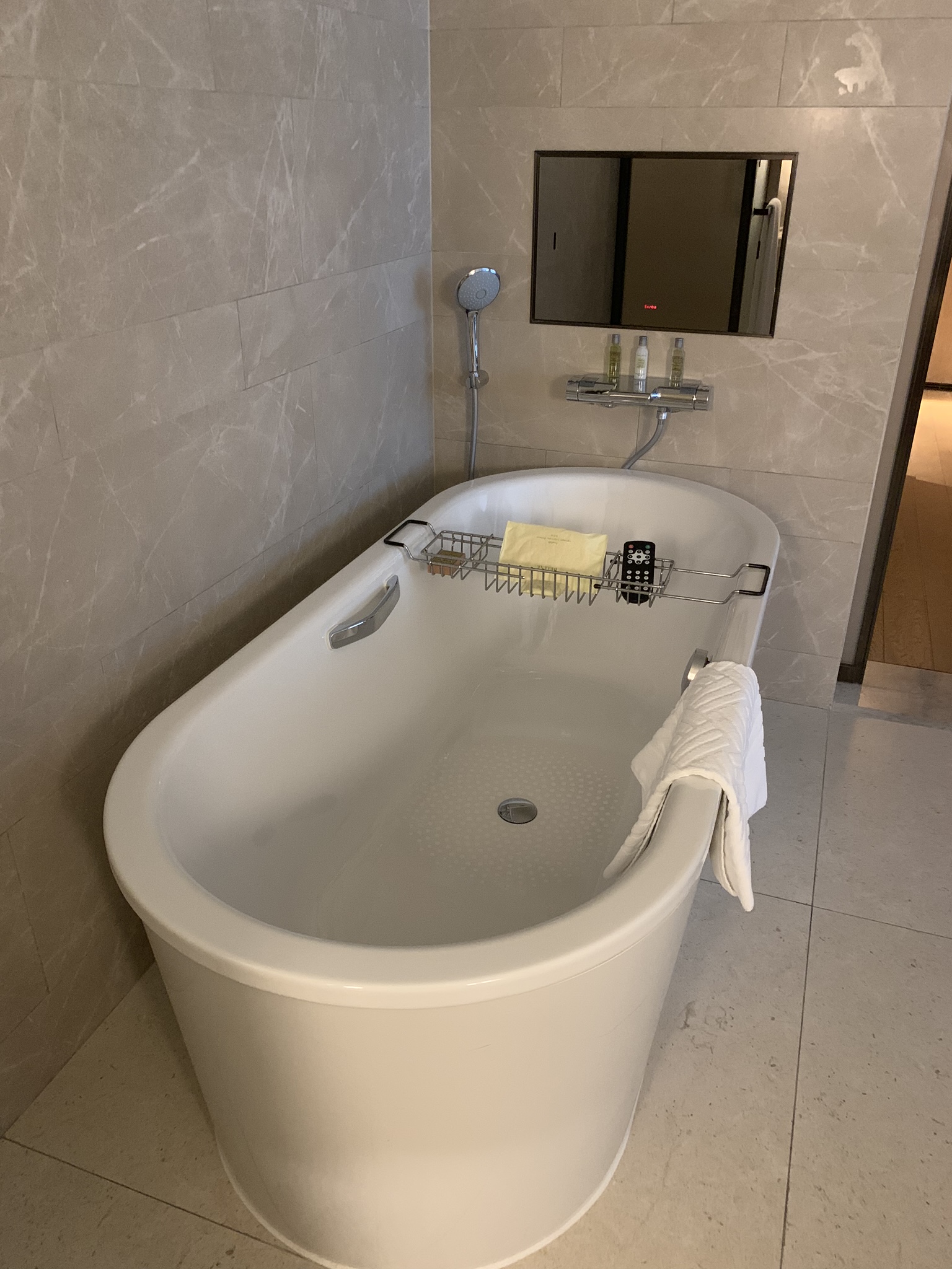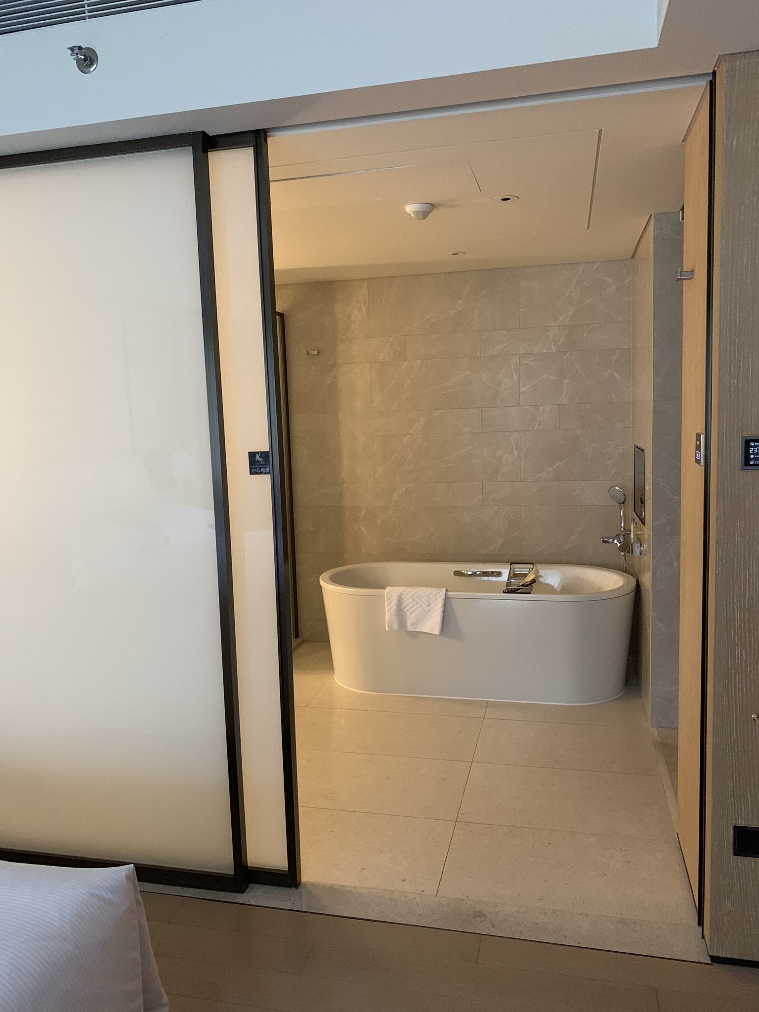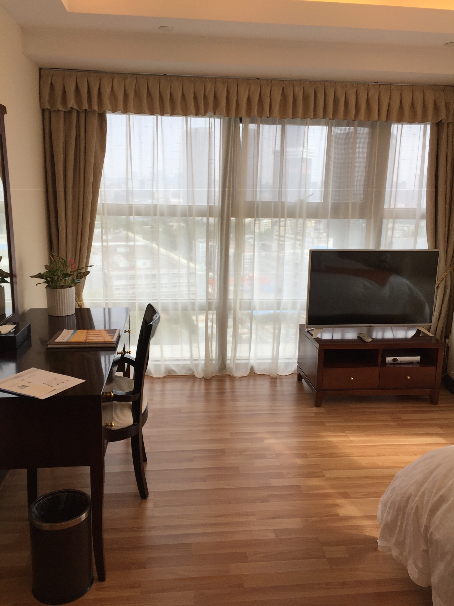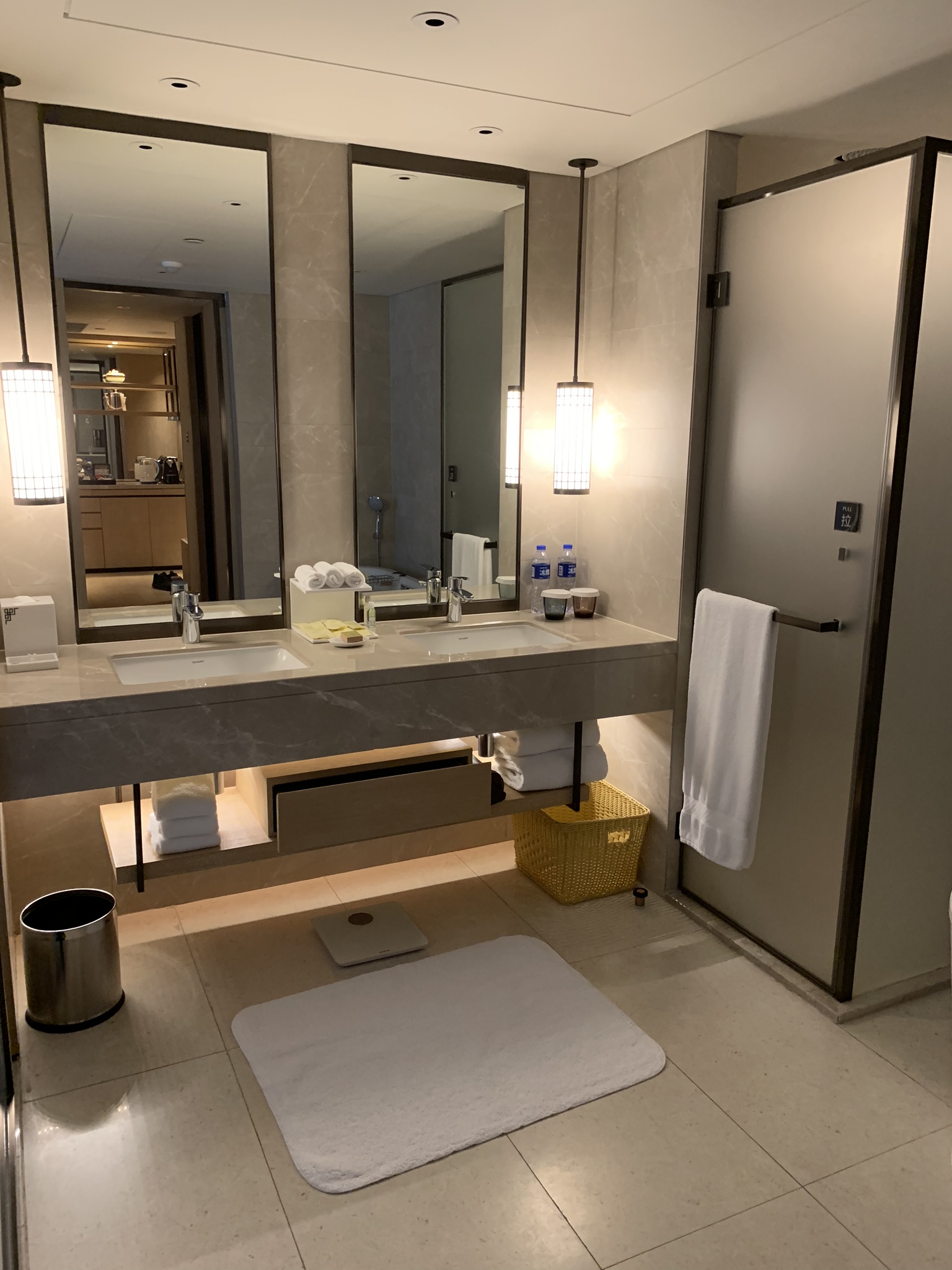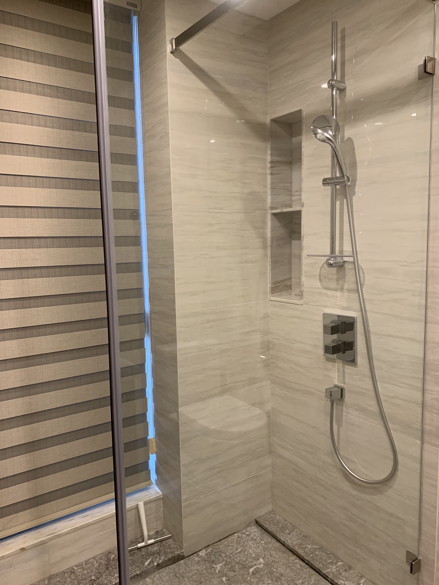 The master bedroom and bathroom are lovely and spacious with all the bells and whistles. The bathtub has windows around it so you can soak in the tub and take in the lights of the city. Each room, bathroom and closet has its own humidity and temperature control which I thought was rather excessive until you realize how humid and hot it can get here. We also have heat which is lucky as lots of buildings in China do not. If you do not have central heating, you have to buy a space heater for every room.