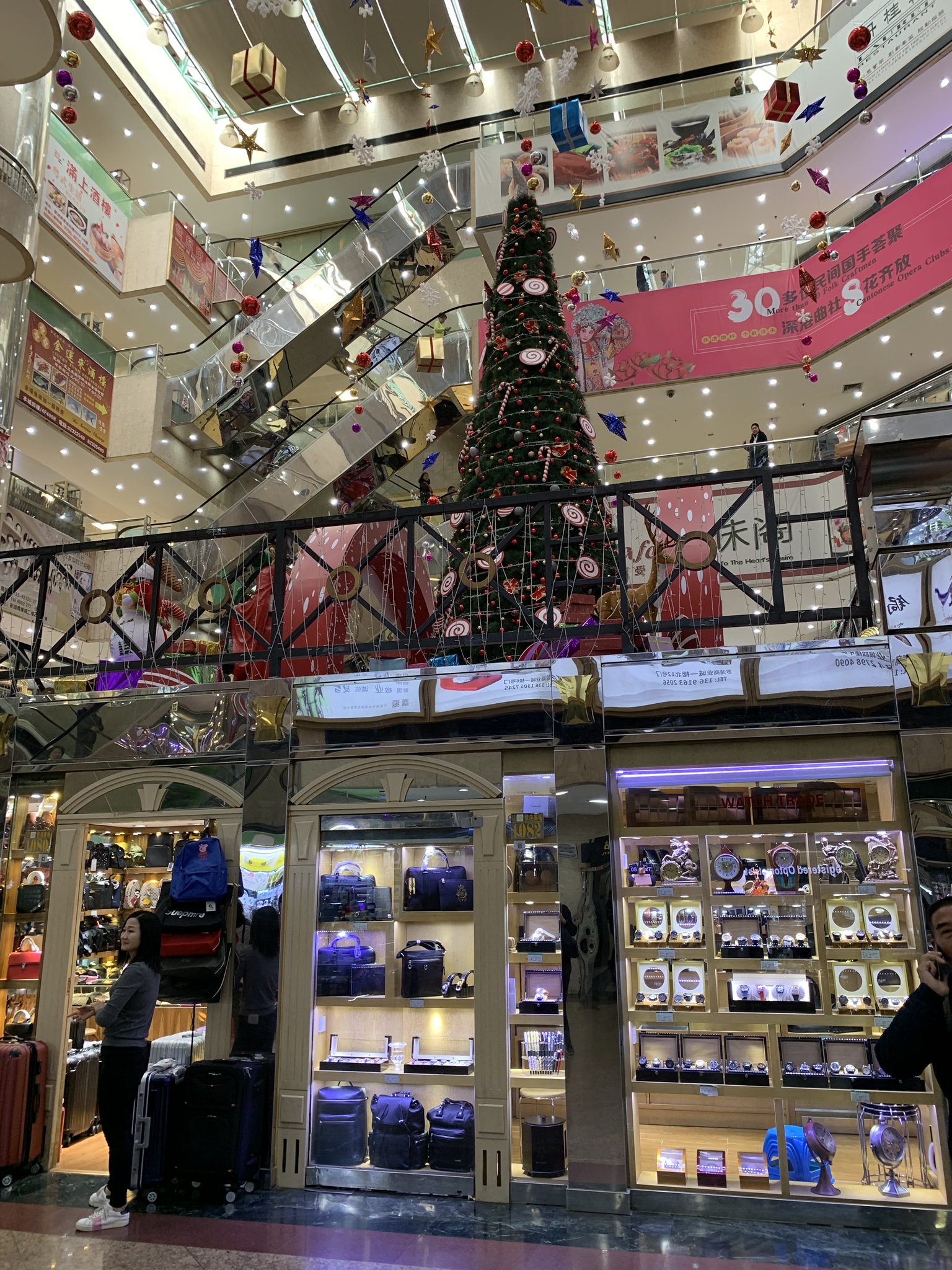 China has a burgeoning middle class with money to spend and a liking for designer goods. Designer goods are great but still out of reach for most of us so China does the next best thing and creates their own ‘designer’ goods. The place to get your ‘designer’ goods is Luohu Commecial City and/or Market about an hour ride on the Metro from where we live. This market is located near the border of Hong Kong and people come over the border for a day of shopping. The Shenzhen Railway Station is located here where people take the train to anywhere in China, as well, the market is a hub for the bus station and the Metro. It is a busy, busy place. Rule number one is that you do not go anywhere with the guys on the walk to the building that tell you they have ‘good stuff this way.’