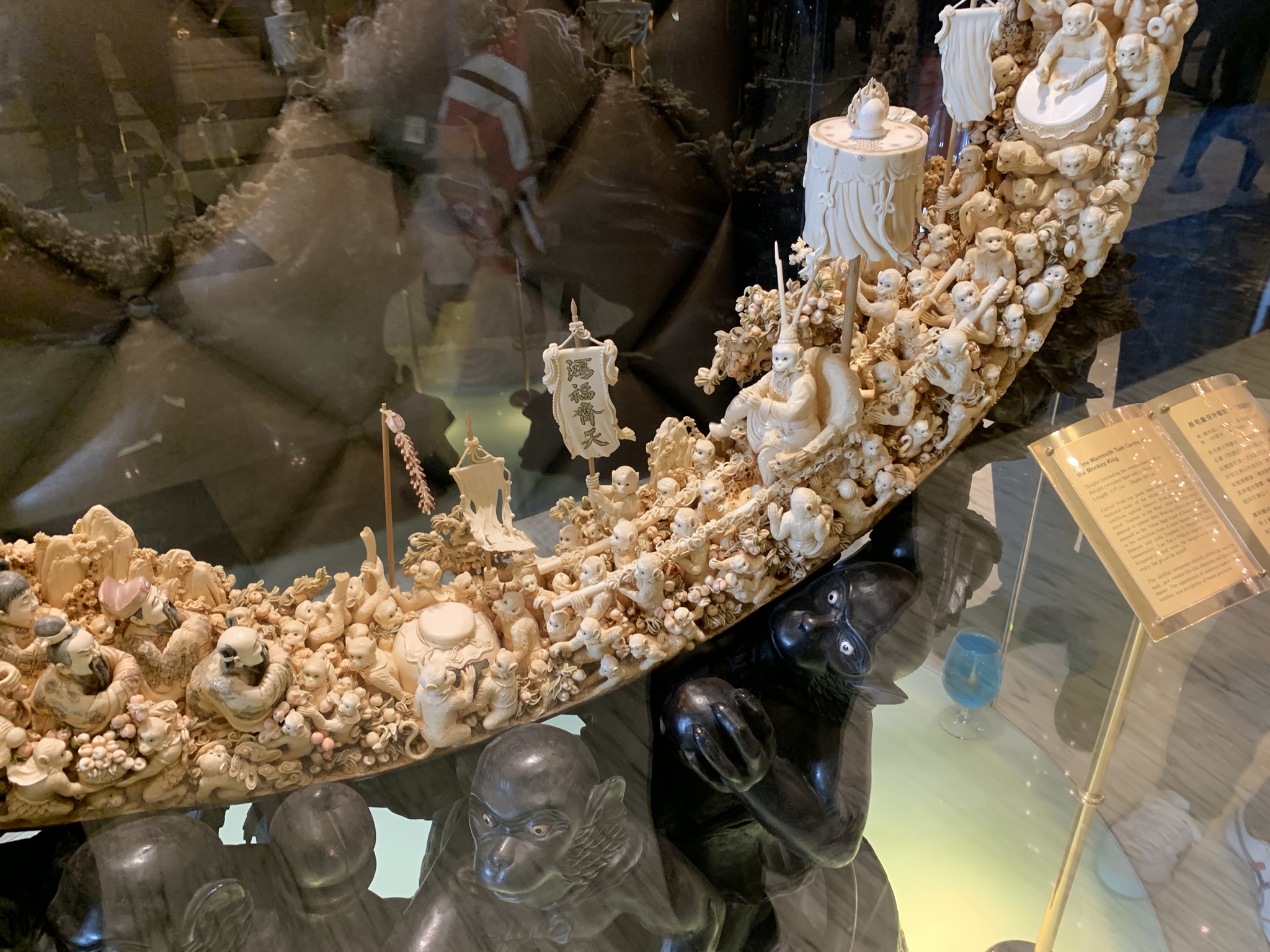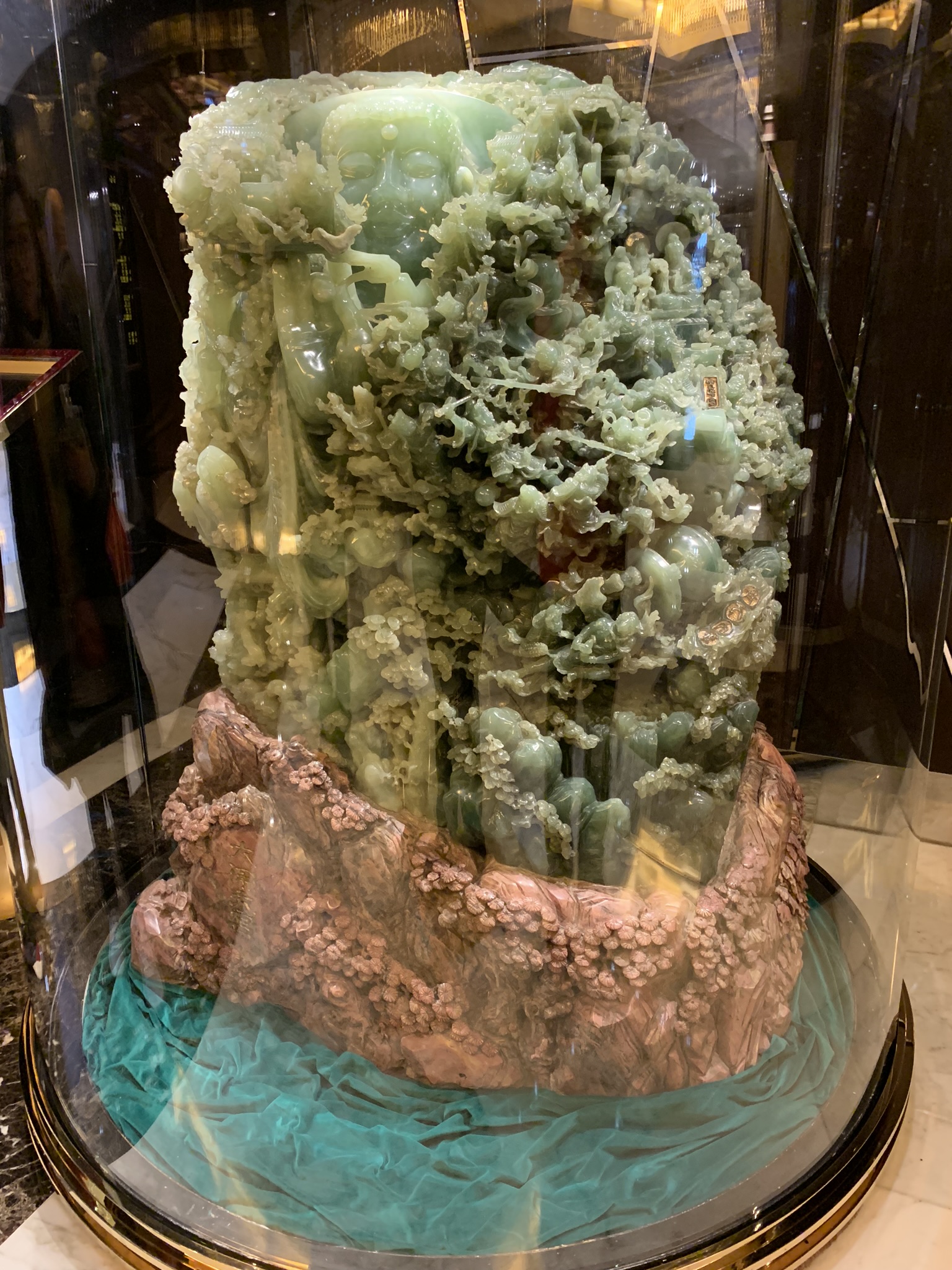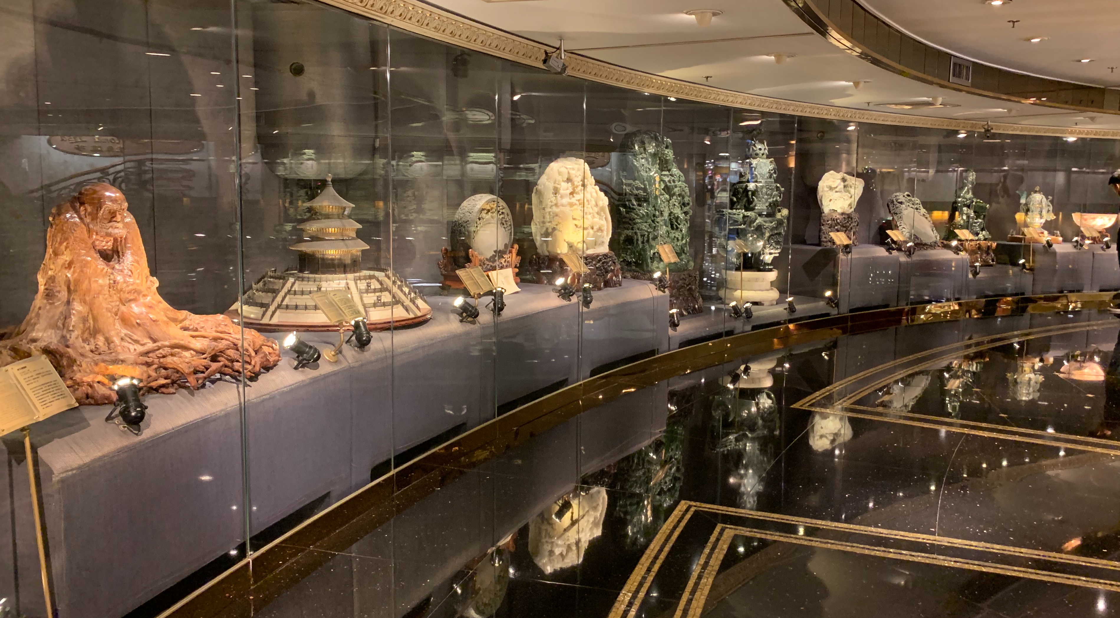 The building is meant to resemble a blooming lotus with the base nestled in a Fabrege egg. We wandered through the lobby and marveled at the many fabulous sculptures of gold, jade, ivory and precious stones. They are all part of Dr. Stanley Ho’s, the king of gambling in Macau, private collection.