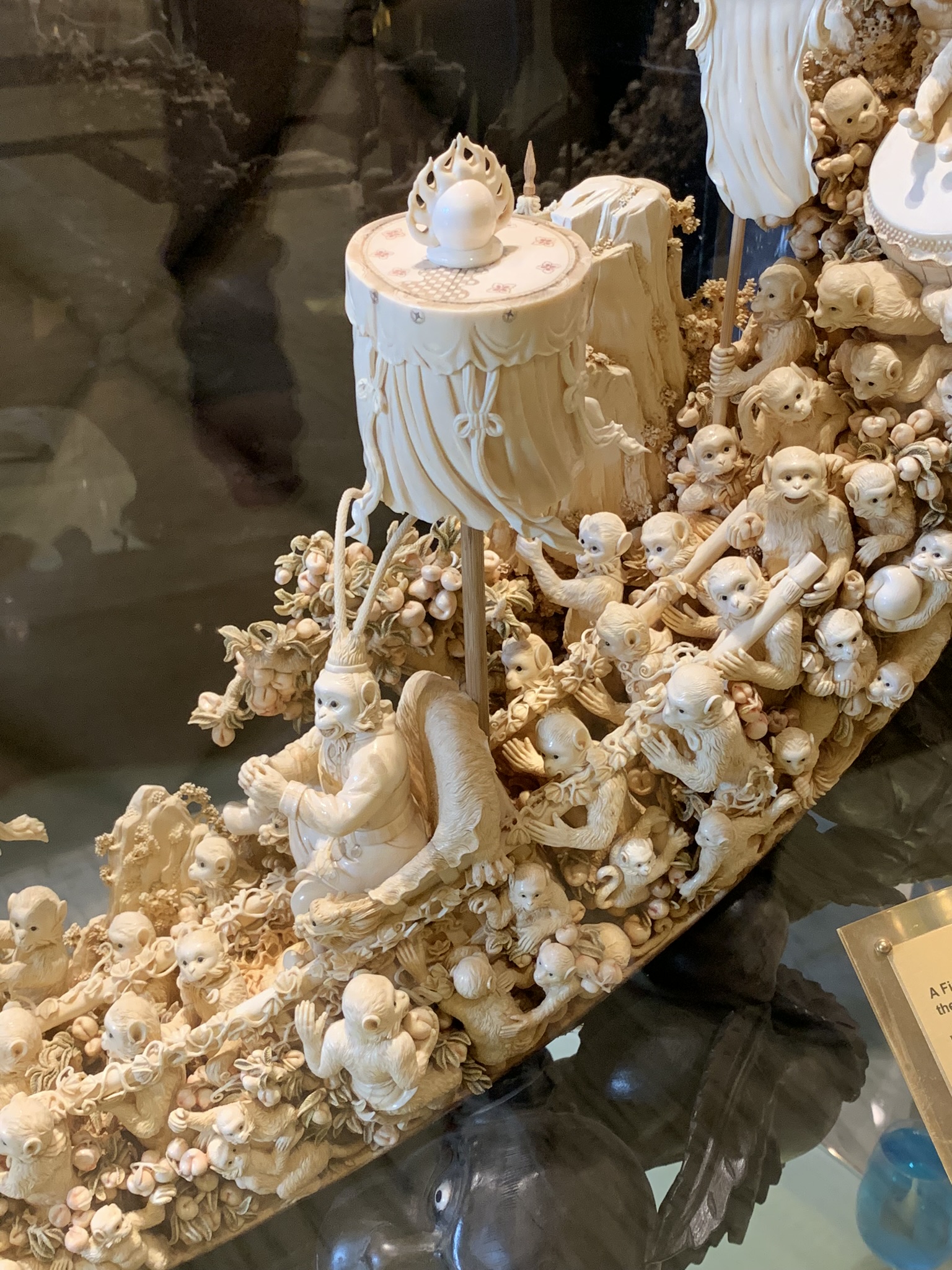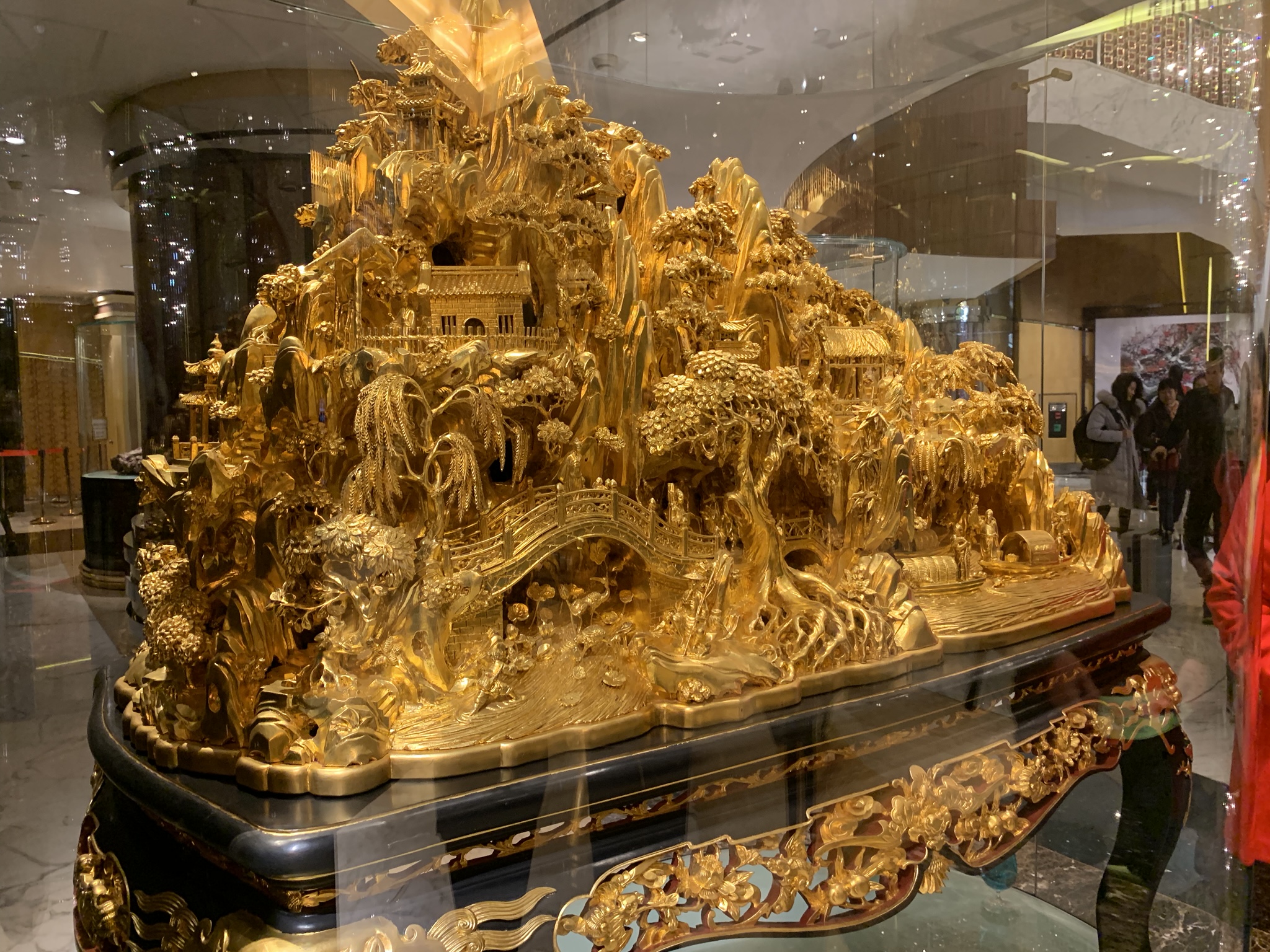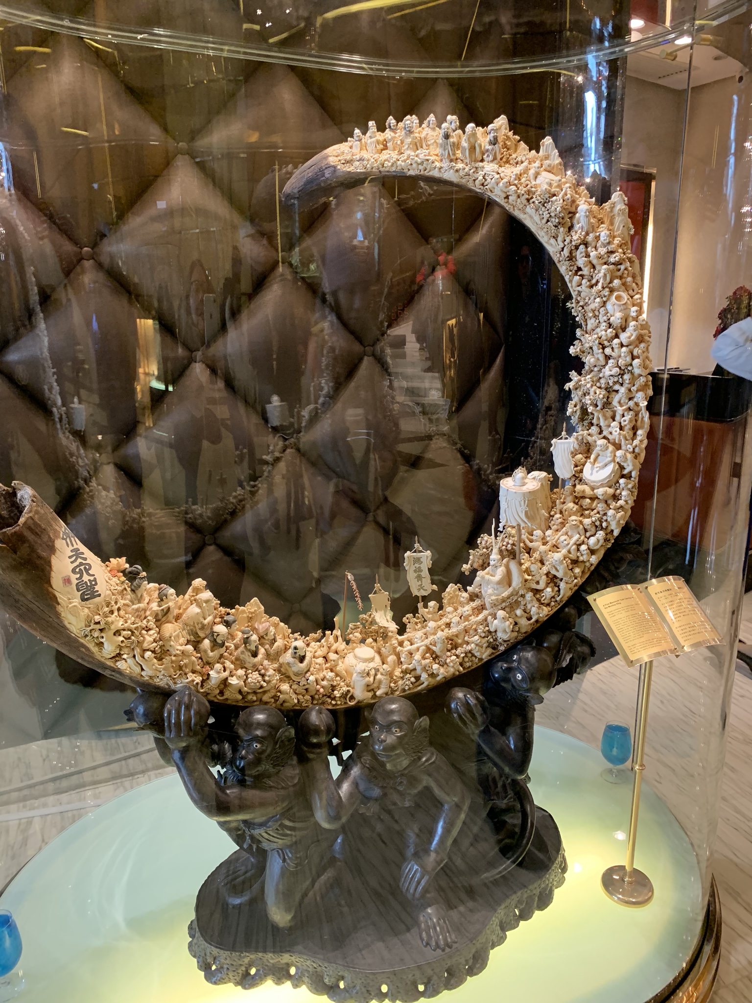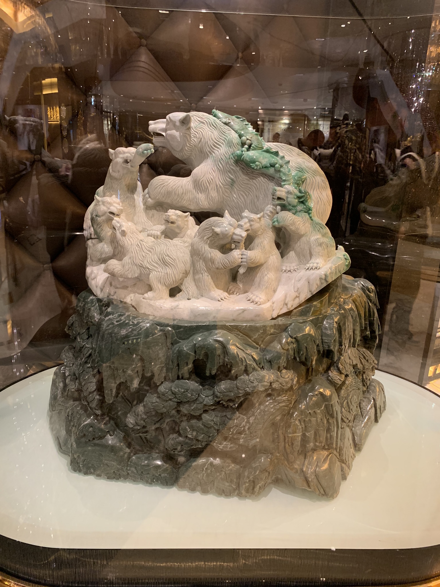 The building is meant to resemble a blooming lotus with the base nestled in a Fabrege egg. We wandered through the lobby and marveled at the many fabulous sculptures of gold, jade, ivory and precious stones. They are all part of Dr. Stanley Ho’s, the king of gambling in Macau, private collection.