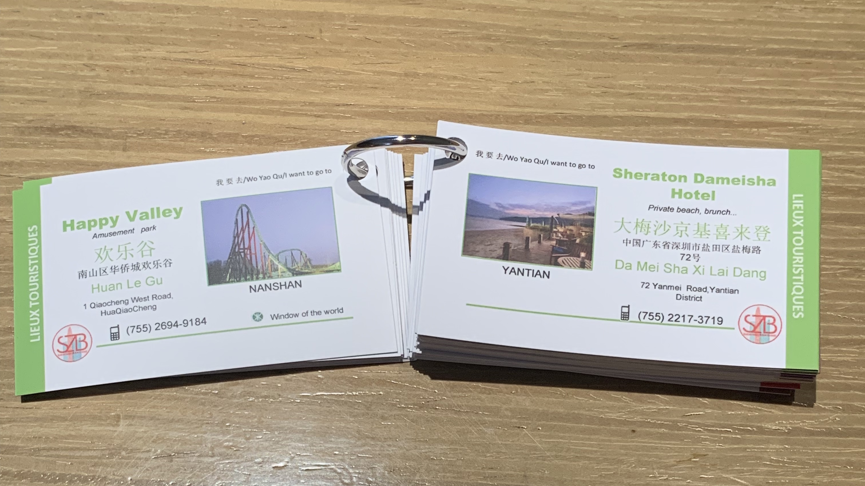 But by far the most useful item in the backpack is the little package of cards. The cards have a picture and the address in both Chinese and English of everywhere you will need to go. These are very handy when you use the taxi and the taxi driver has no English. Also it is vital to know your home address or they could just drop you off wherever and then the fun would begin! If that’s not enough to intimidate you, the taxi driver may refuse to take you if he doesn’t recognize the place where you want to go.
