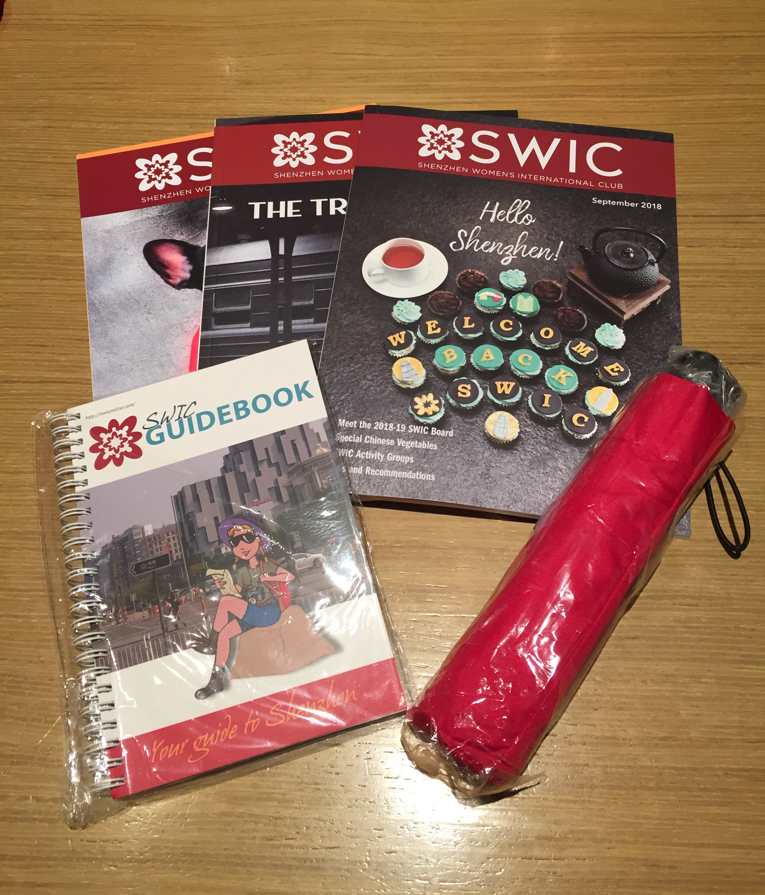 Inside the backpack you get SWIC magazines, published quarterly, a guidebook answering all sorts of question, a handy umbrella and a T-shirt!