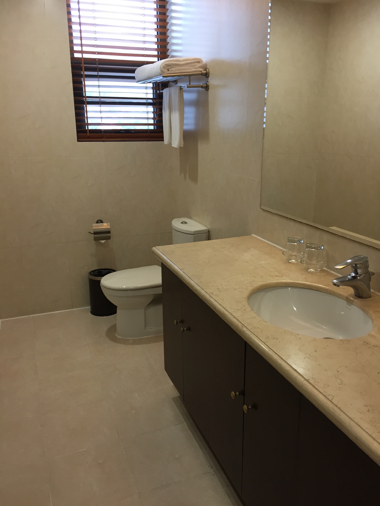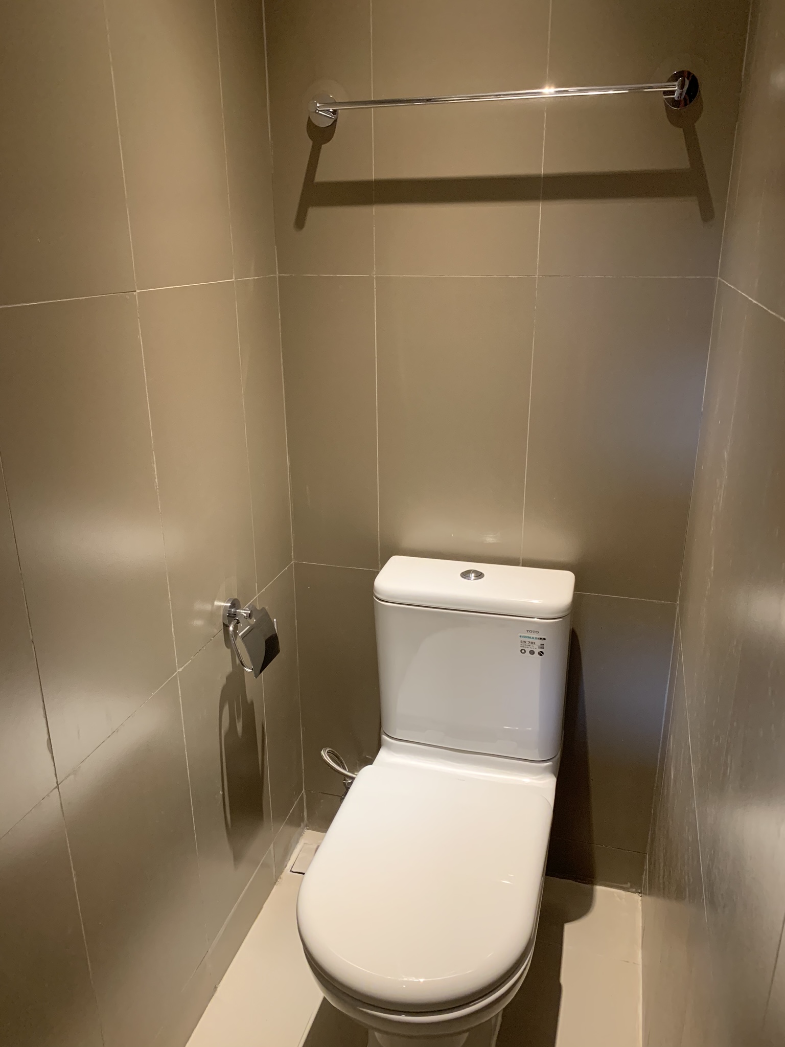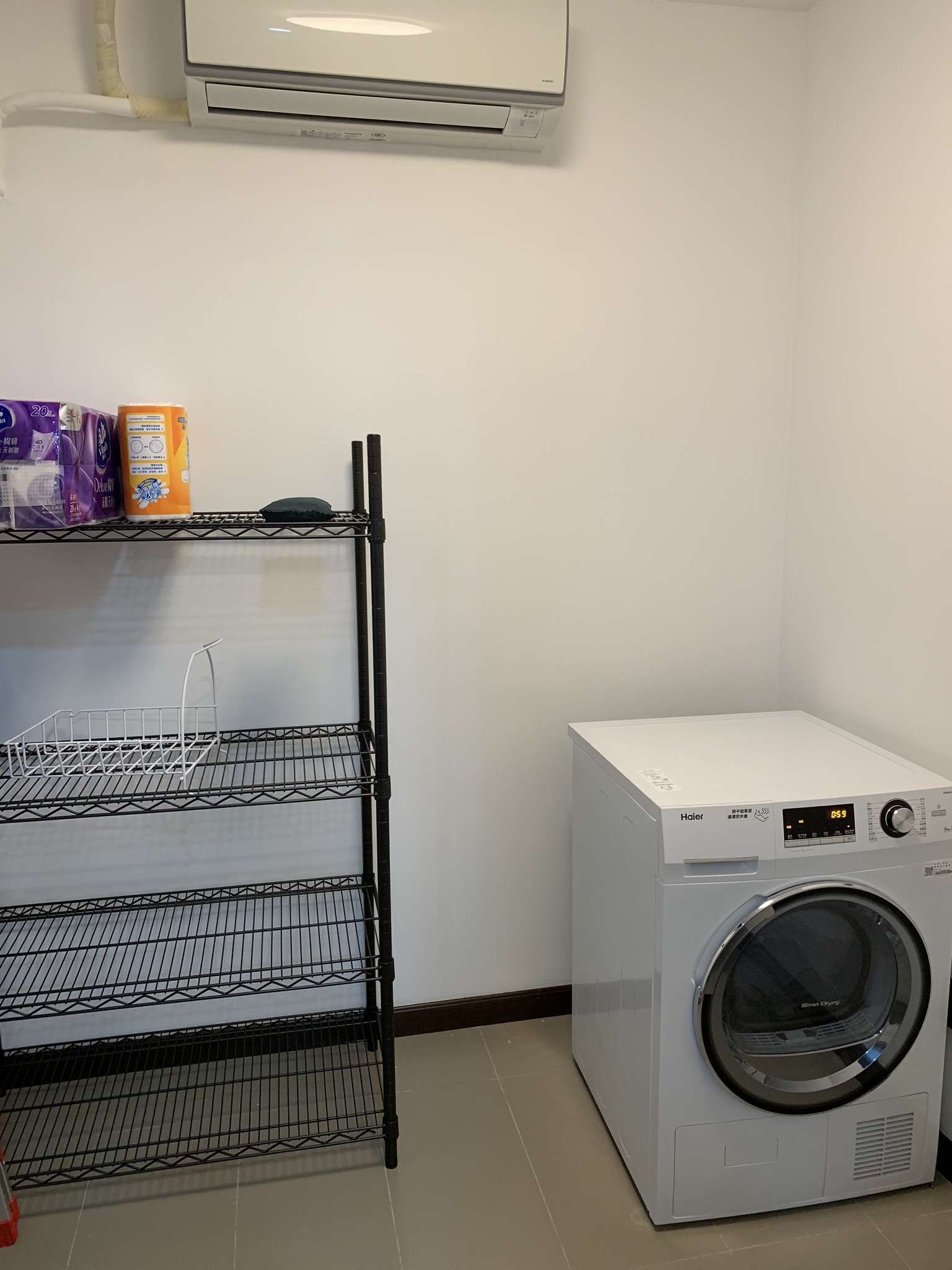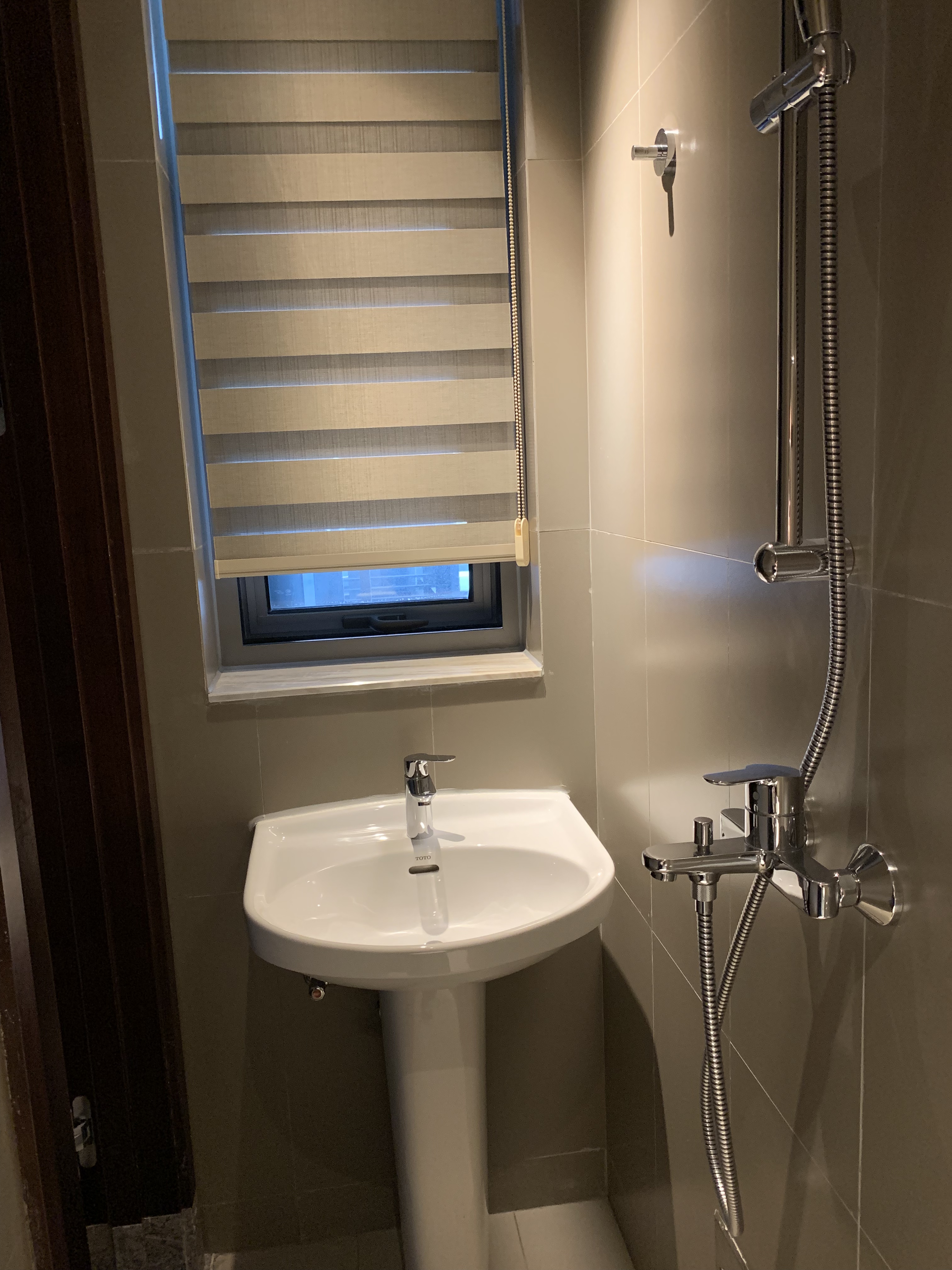 Also out on the mini balcony is the ‘ayi’ room where the dryer is located. The dryer is not vented outside and it has a condensing unit which means we have to drain the water out of it when your laundry is dry. Well, things are never really dry here but we are lucky to have one. An ayi is a Chinese maid and this would be her room if she were to live-in. The room is 6 1/2 ft by 6 1/2 ft so about 42 square feet or 4 metres square. Attached to the ayi’s ‘bedroom’ would be her bathroom. It is very compact being only 2 1/2 feet by 6 1/2 so you can pretty much do everything at once. Very efficient!
