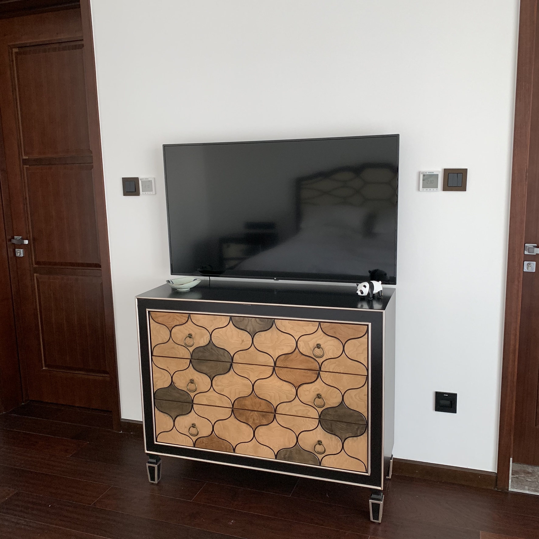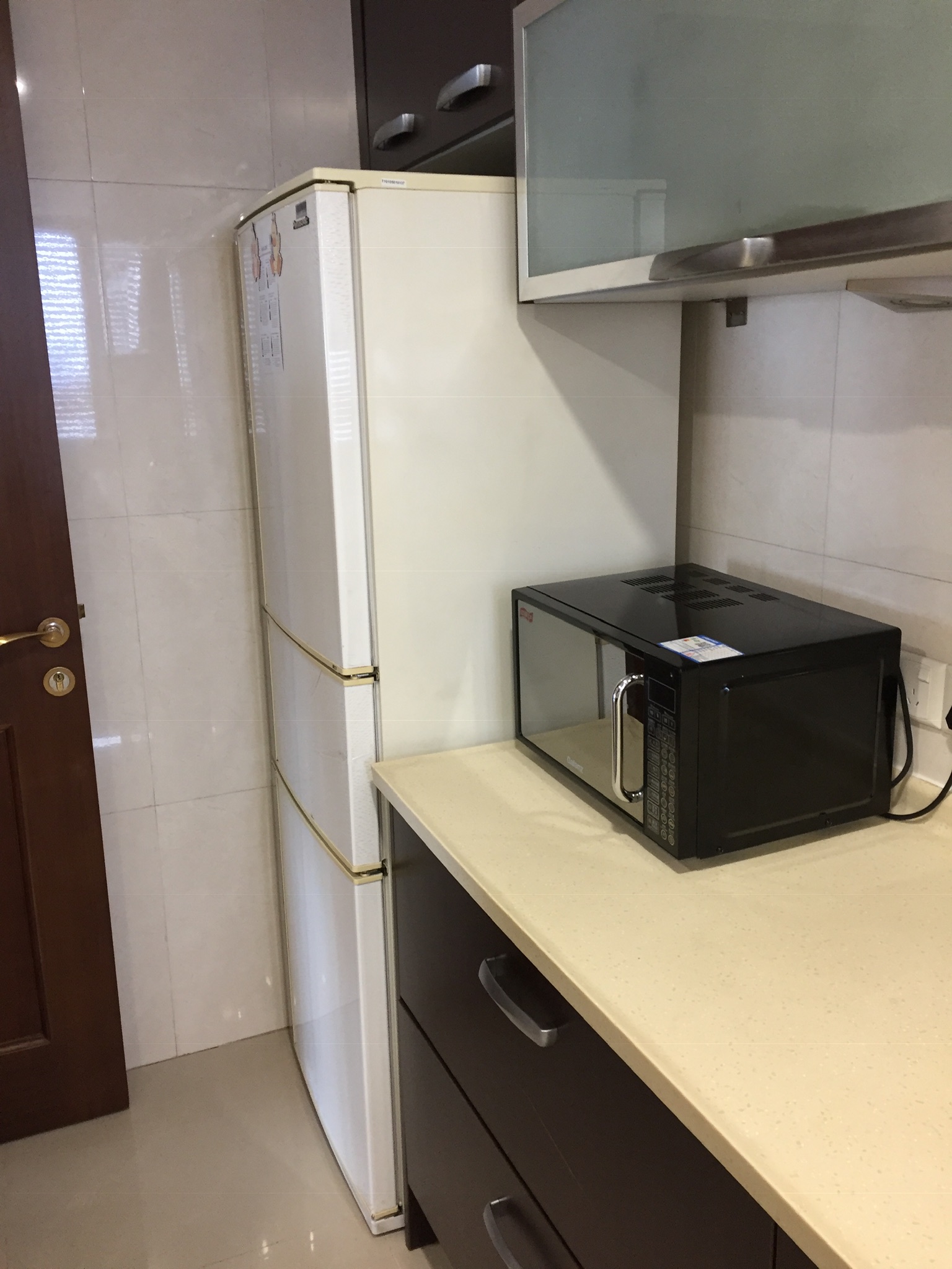 The front entrance, well the only entrance I guess. The video panel is the doorbell where the security guard rings you up to let you know if someone is delivering something or company is coming. They let them into the complex and then there is another set of secure doors people have to come through to get to the elevators. The security guards do not speak English so it’s always a hit or miss with communication. Most of the time it is good and learning some basic Chinese words helps your cause immensely.