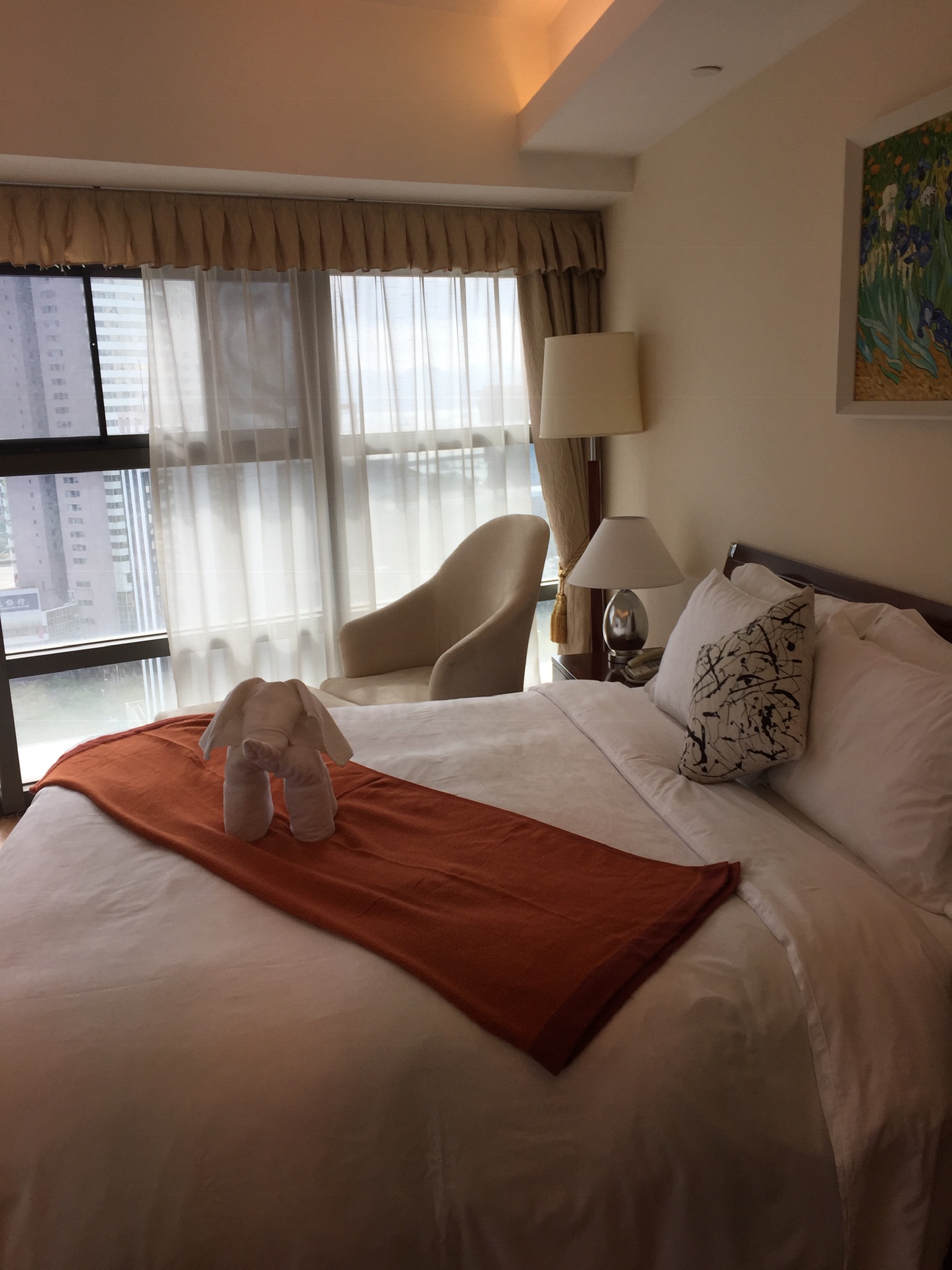 Our final appointment of the first day was at a serviced apartment/hotel. This was very similar to what we had been living in where someone comes and cleans your apartment twice a week and the breakfast buffet is included. It was a much bigger apartment than where we had been staying but it was right next door to the construction zone where they are building a new subway line. Every day at 11am like clockwork, you could hear and feel the blasting that was going on underground to build the subway line. It was just like in the Merry Poppins movie where the Banks family had to hold everything down when the admiral fired off his cannon next door.