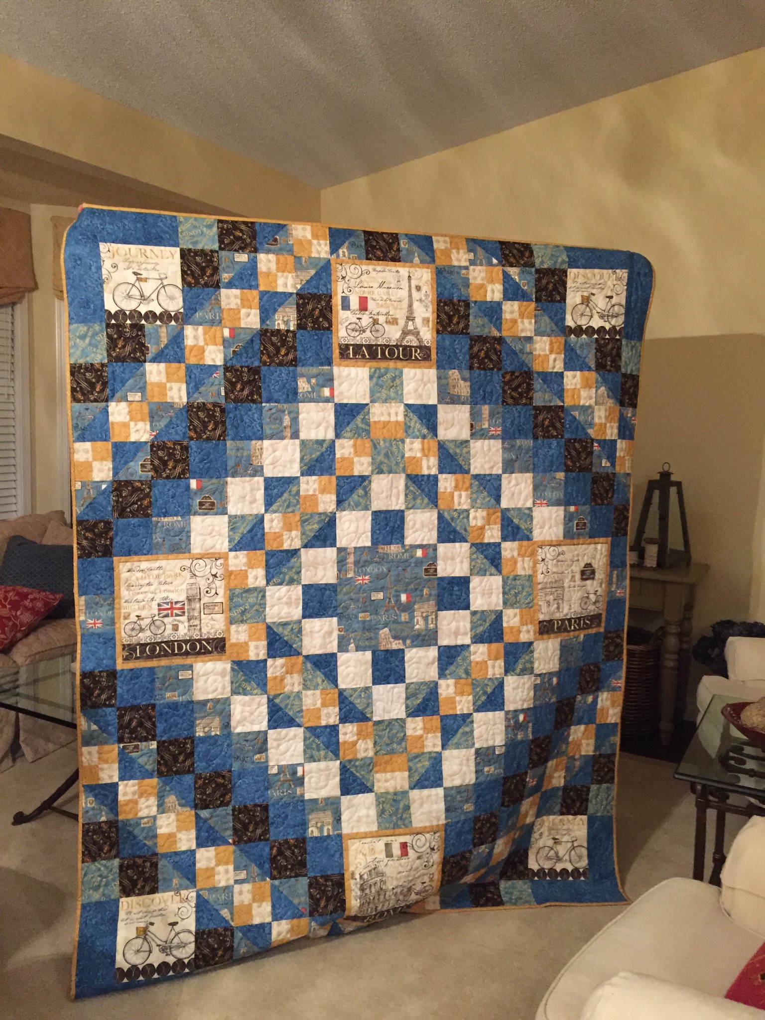 The living room and my ‘Around the World’ quilt that I brought from home.