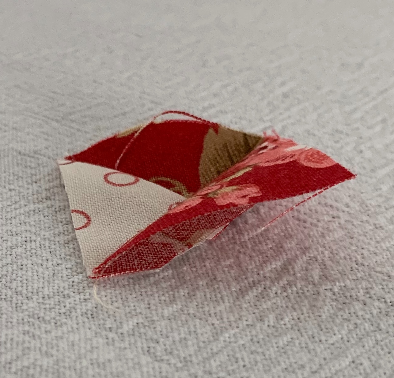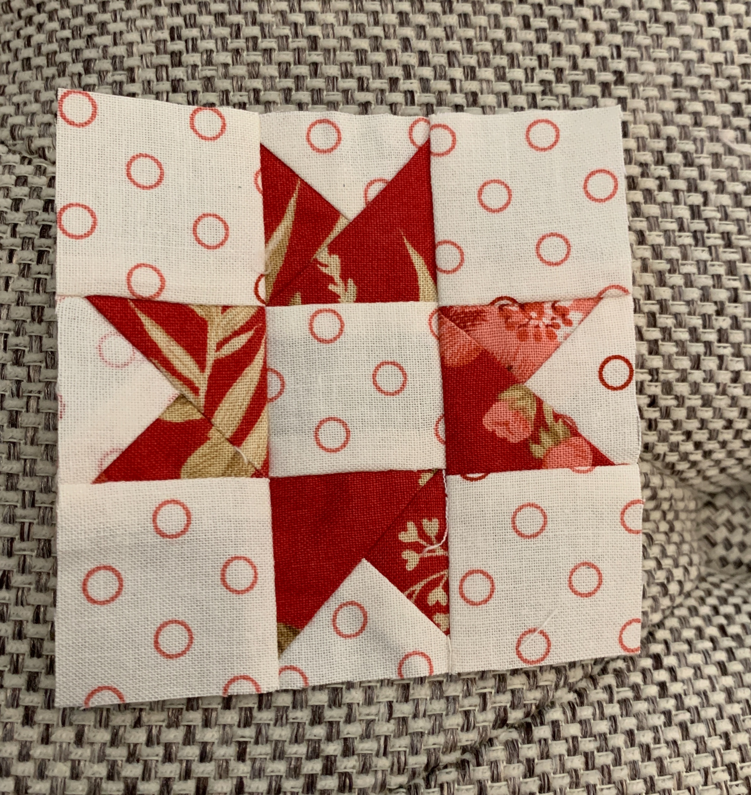 The only problem I am having is that the pattern calls for working with 1 1/2” squares, which are very small and do not lay flat after you iron them. I was wishing I had brought some spray starch with me. So what do you do when you don’t have access to something like that here…you make your own spray starch! A simple google search gives you the recipe. Two cups of water and 2 oz of vodka. I decided I didn’t have anything to lose and if it didn’t work out we could always drink the vodka. But it worked like a charm!