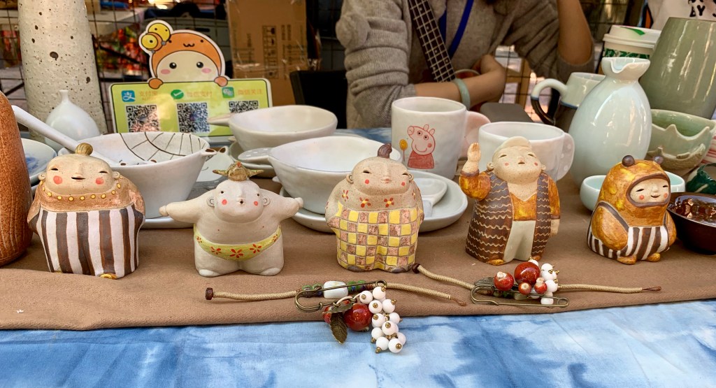 The next day we hopped on the Metro and went to the OCT Loft Complex. OCT is short for ‘Overseas Chinese Town’. OCT used to be an industrial area and the low warehouses started life as home to a Chinese TV manufacturer. It now houses a variety of art galleries, coffee shops, some live music and trendy restaurants. On the first and third weekend of every month there are a variety of artisans and crafters selling their one of a kind articles or vintage items. Score! We will definitely be back.